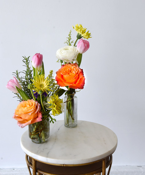 The colors of spring blooming in a trio of glass vases varying size adds the perfect touch to a gathering of friends, family or party. Display them together or separately.