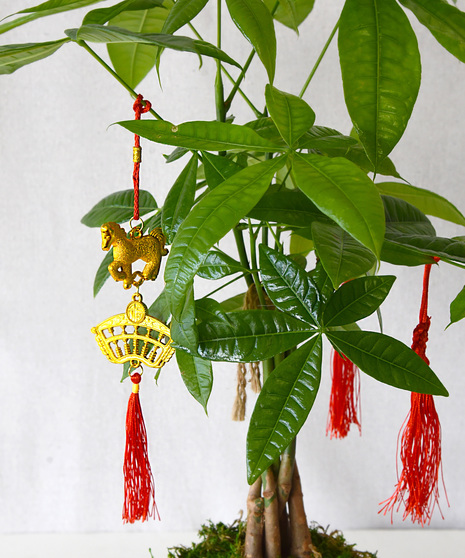 Welcome the Lunar New Year with a golden horse on a money tree plant. The money tree plant is commonly used in feng shui for positive feelings and attract prosperity to the owner. Planted in a scalloped-edge matte gold finished vessel. This easy-to-grow plant prefers indirect sunlight.